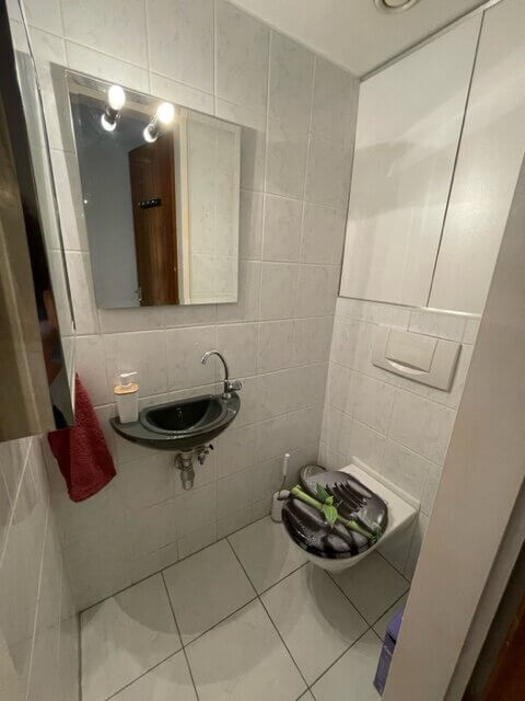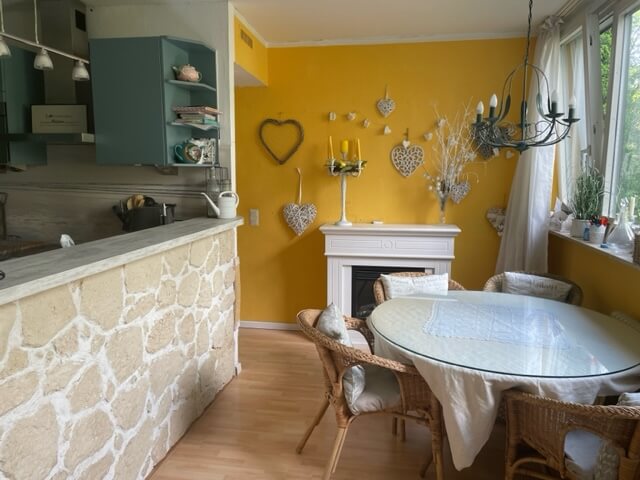 Zur Mitbenutzung gehört der gemütliche Essplatz vorne im Gemeinschaftsbereich, die modern ausgestattete Küche sowie das Bad mit Badewanne und das Gäste-WC. Alle Gerätschaften für die Benutzung der Küche sind vorhanden und können mitbenutzt werden. Im benachbarten Haus in einer Waschküche befindet sich eine Waschmaschine und ein Trockner.